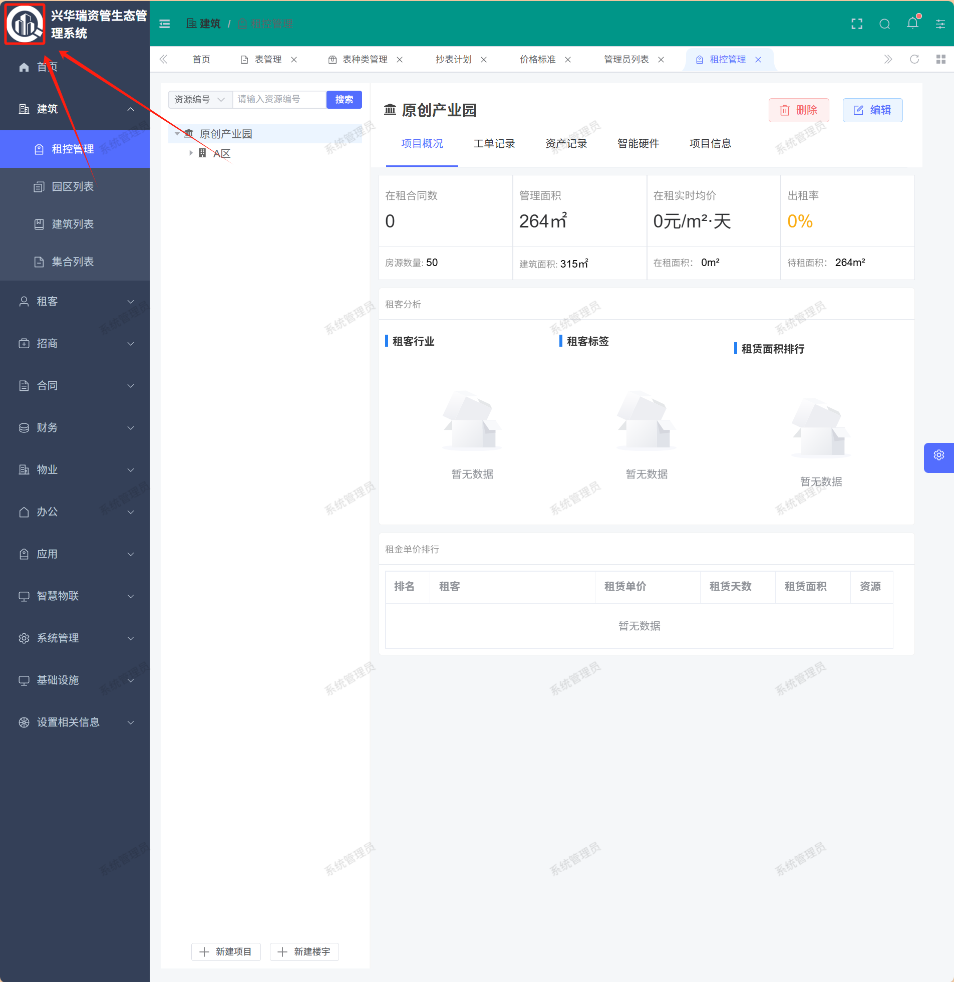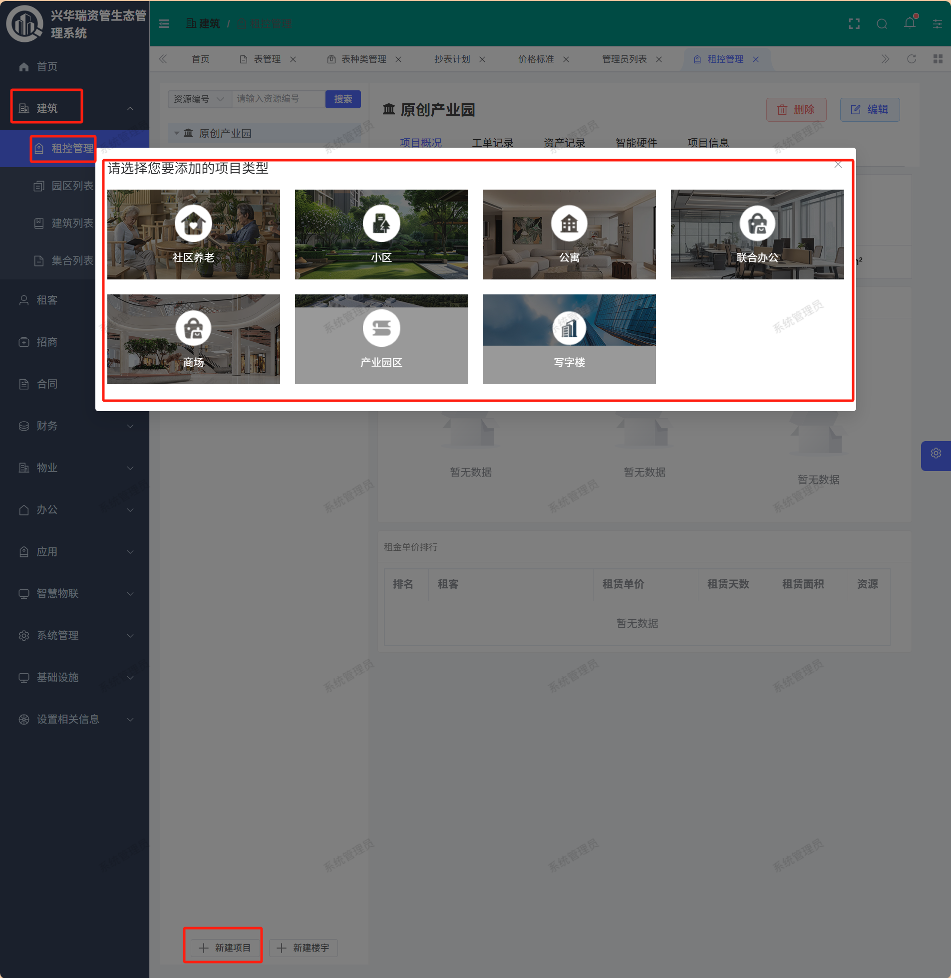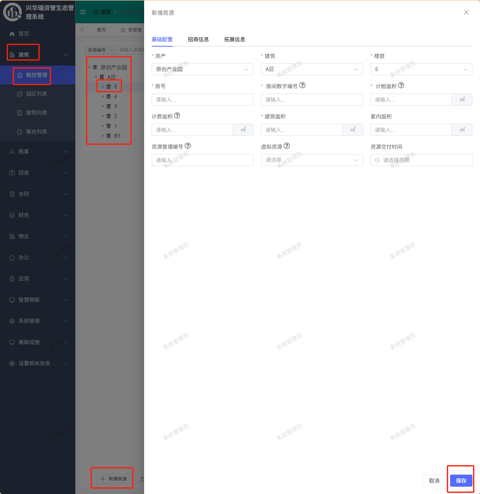 在左侧树形中找到对应的楼层,点击选中的楼层后,点击下面的【新增房源】添加房源