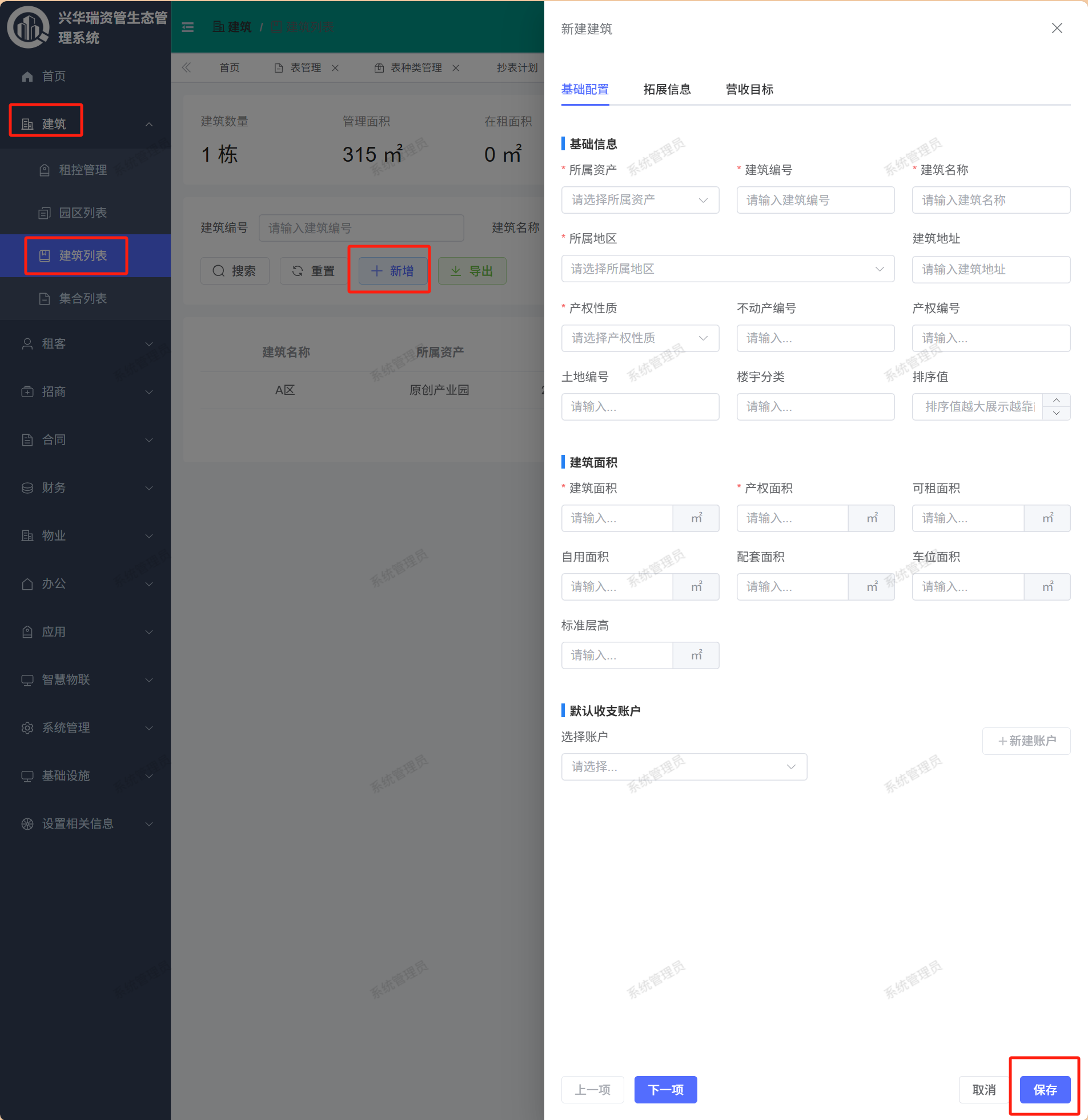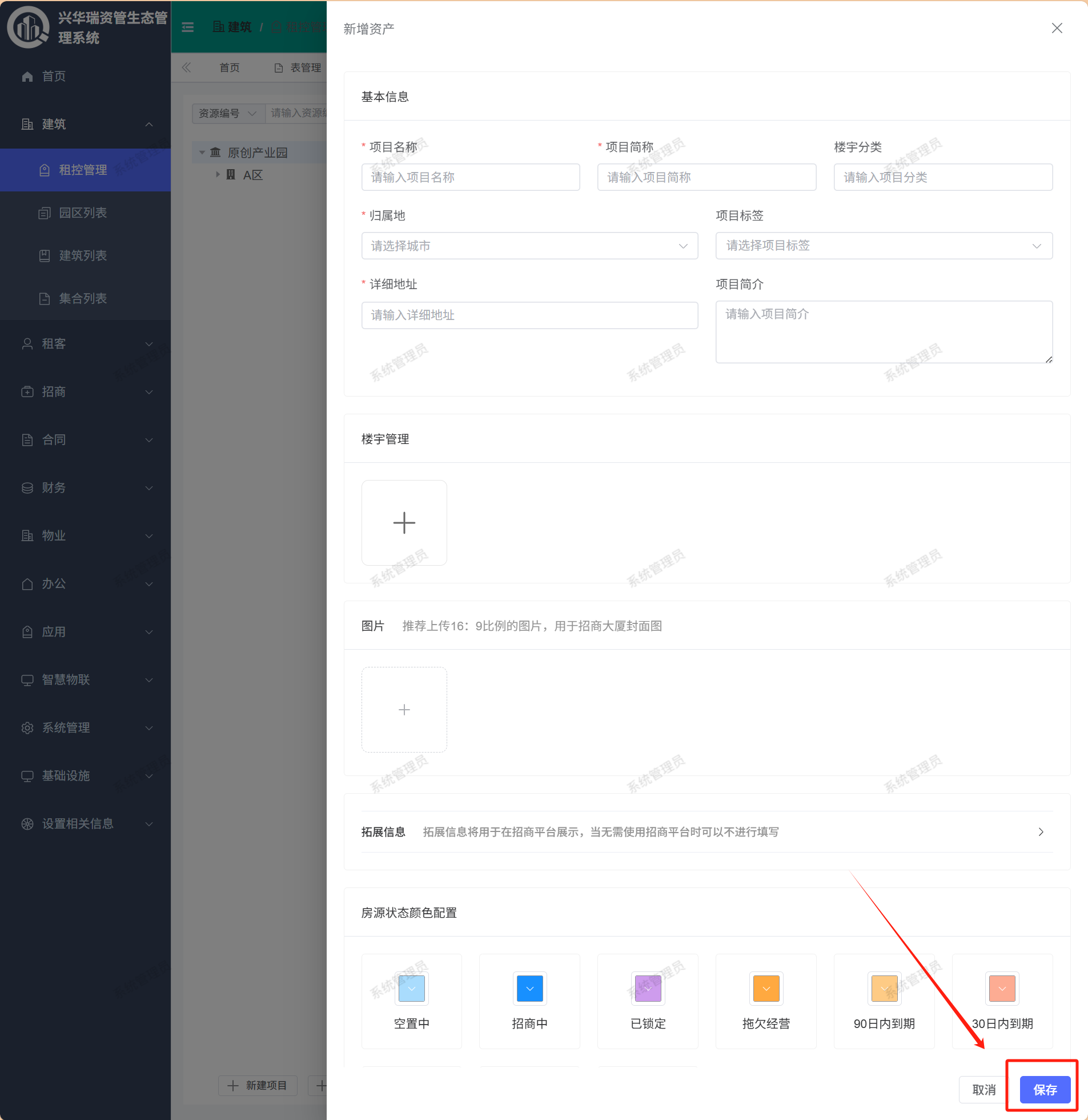 点击进入新建项目页面,根据实际情况填写相关信息,并点击【保存】按钮