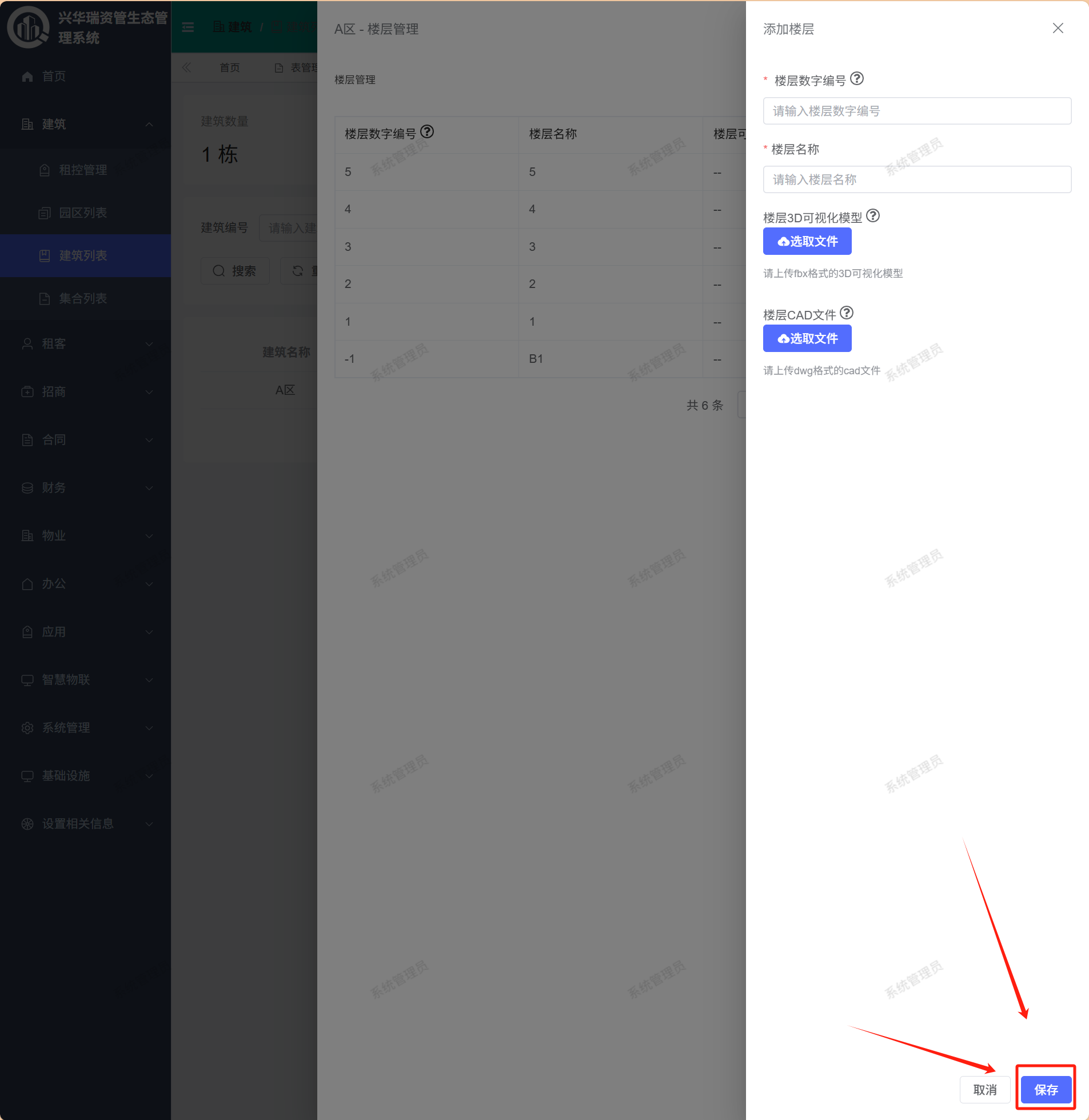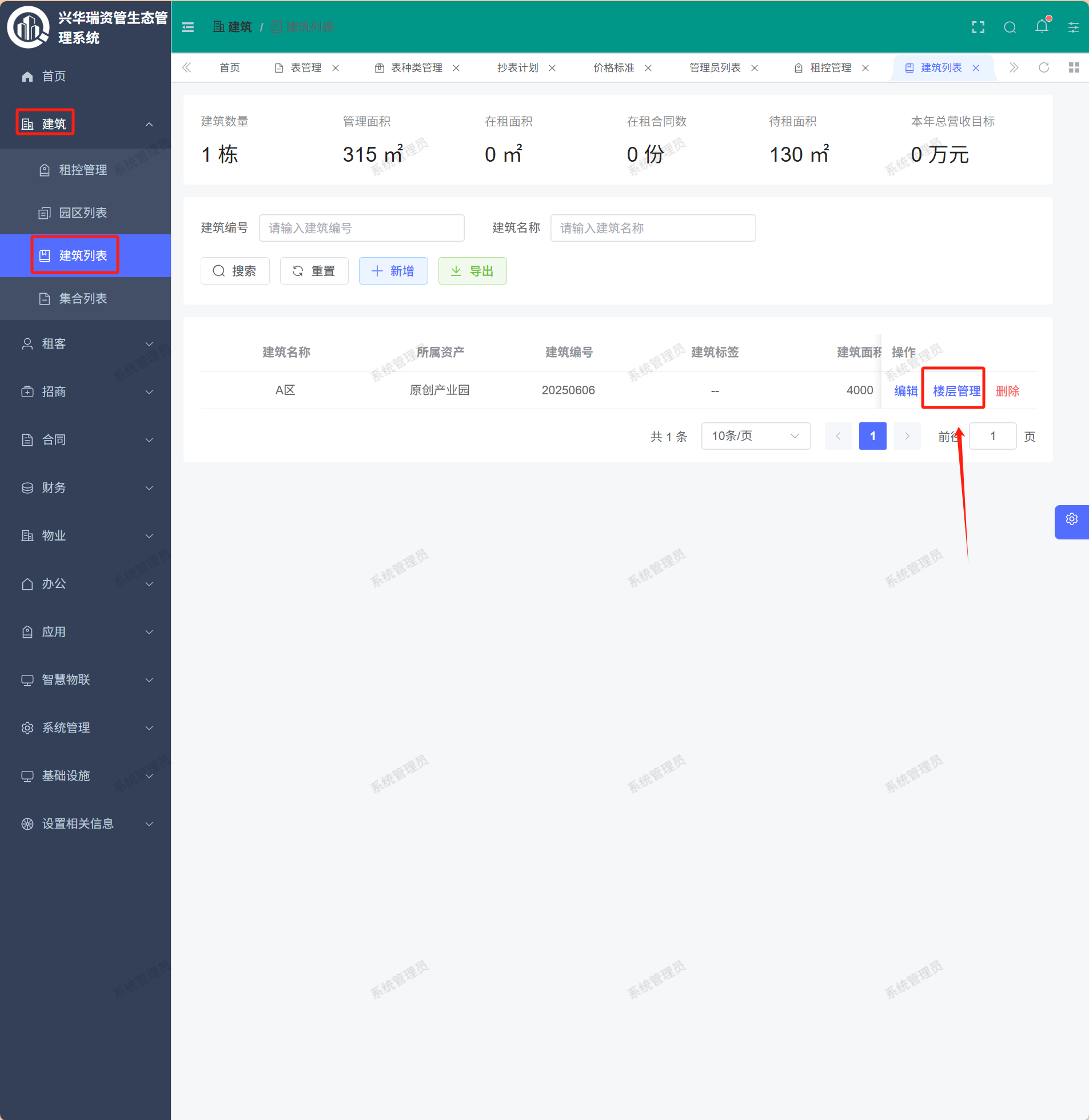 在新建楼宇的页面找到要添加楼层的建筑,点击右边楼层管理在弹出的页面点击添加楼层