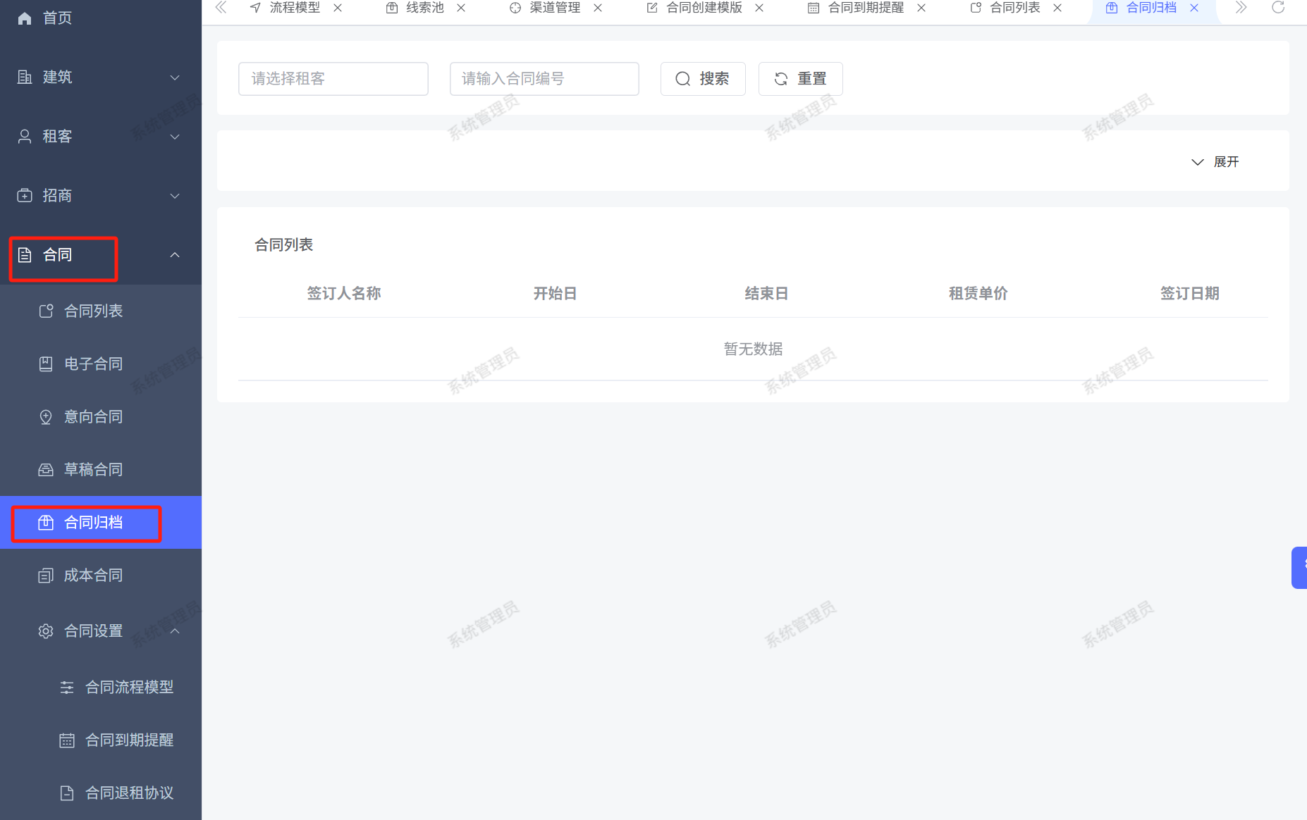 该合同到期或租客退租等情况,导致合同终止的情况下,会展现在【合同归档】中,便于后期查阅。