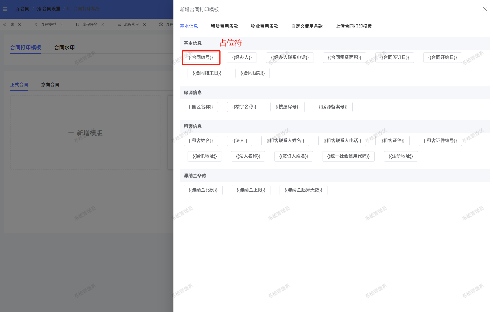 后续生成合同时,系统会将该占位符替换为合同真实的值,无需再手动填写。