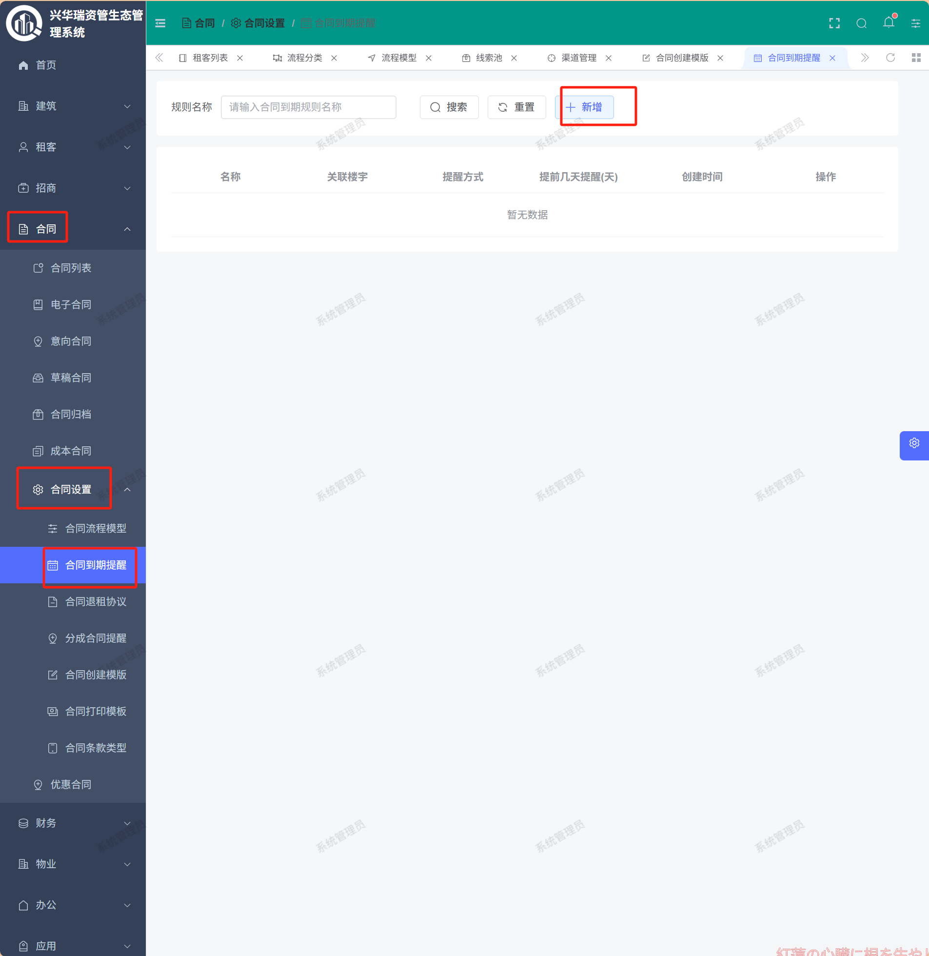 页面路径:【合同】——【合同设置】——【合同到期提醒】