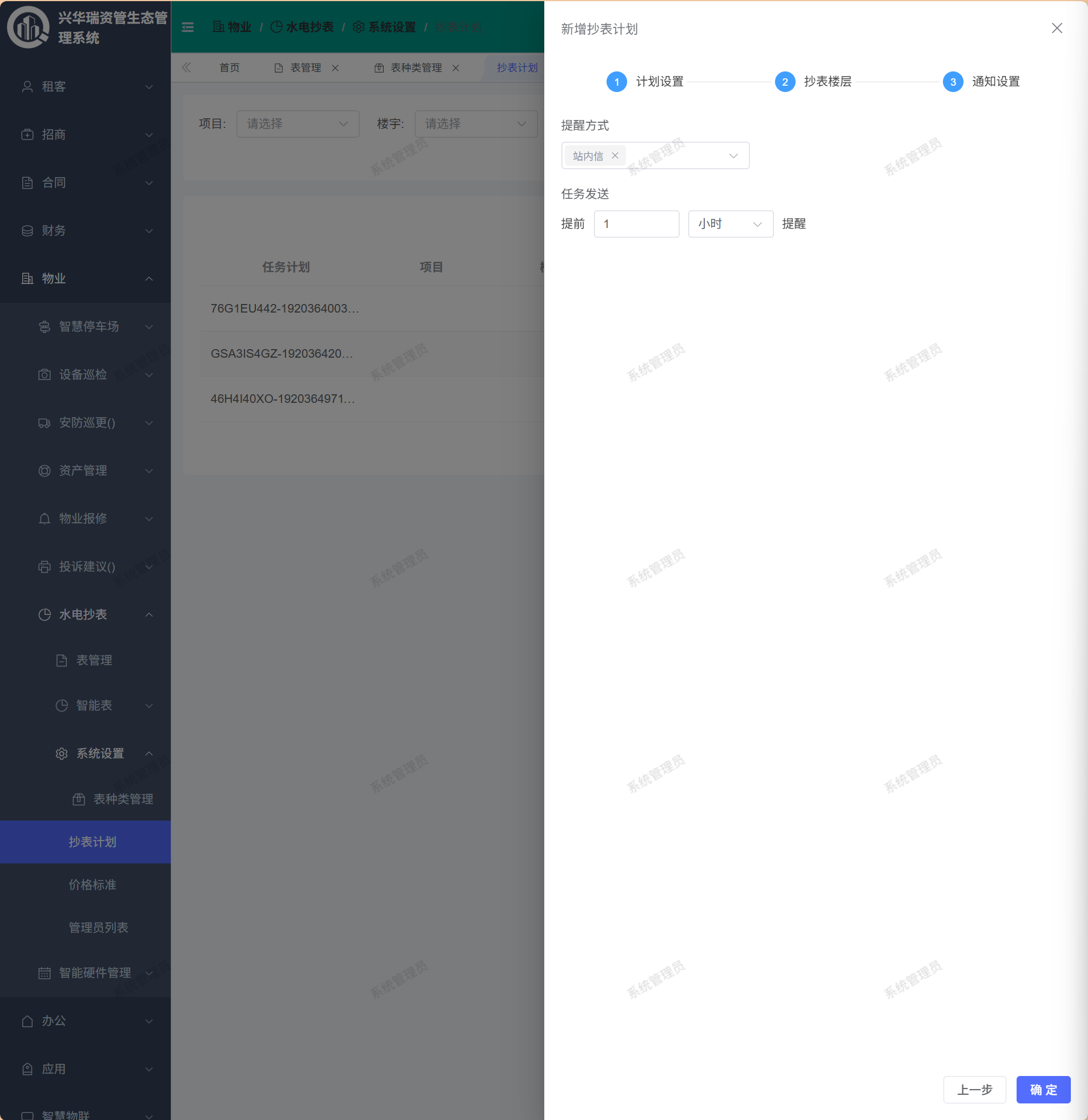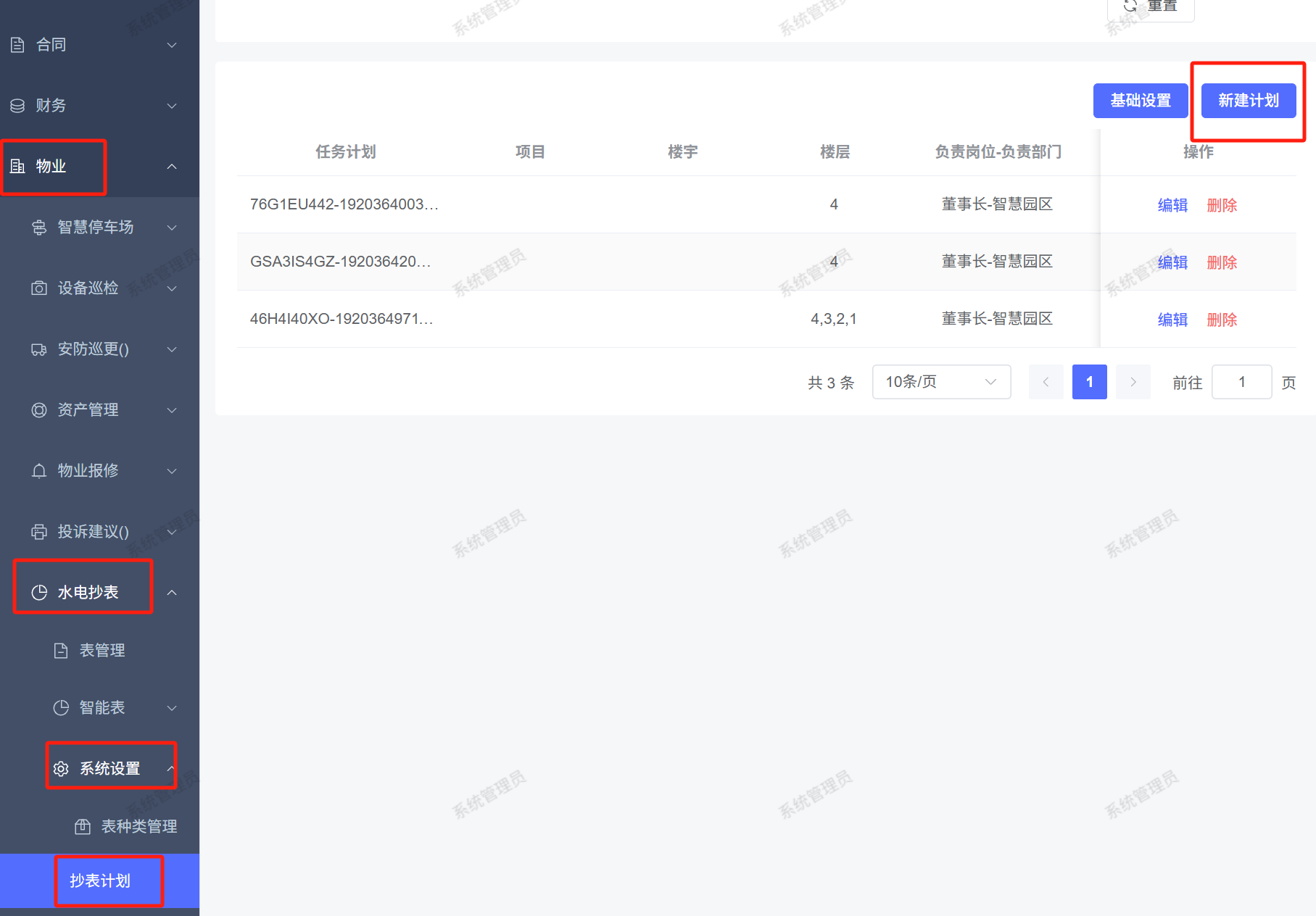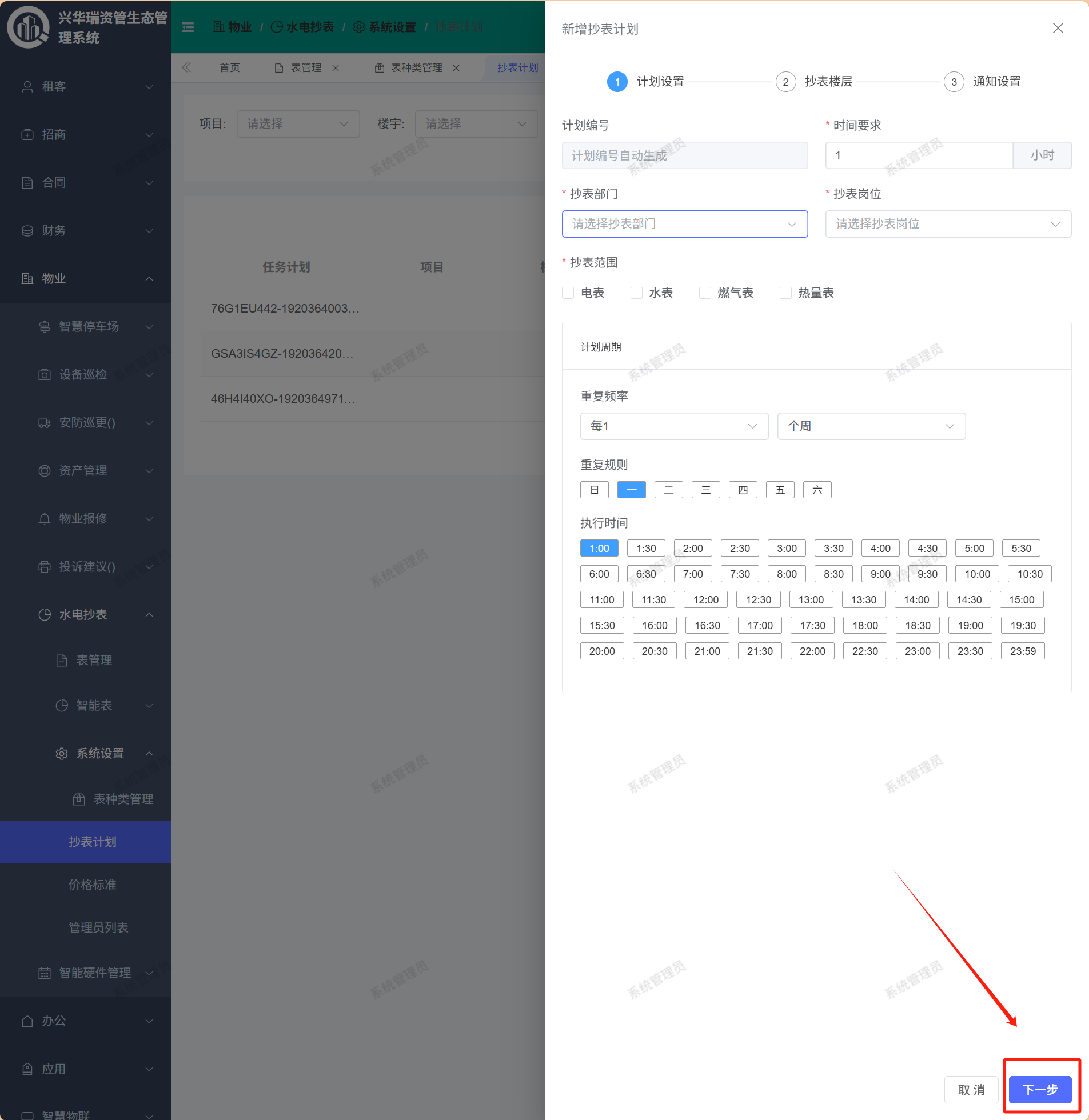 页面路径:【物业】——【水电抄表】——【系统设置】——【抄表计划】